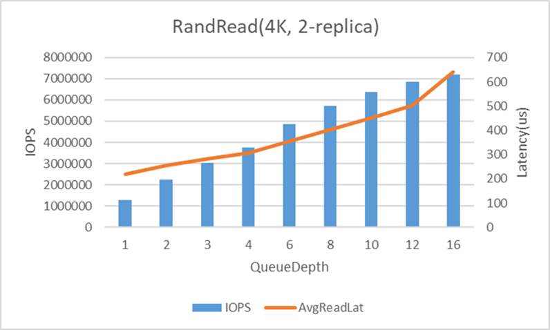 图2:4KB数据块,2副本,100%随机读性能测试结果