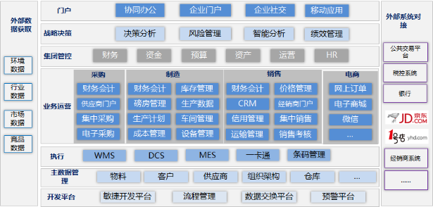 集团化管理。顺利获得集中财务核算、集中资金管理、集中采购管理、集中销售管理、集中生产运营管理、集中人力资源管理等集团化管理手段,辅助企业集团掌握各分子公司的信息、把握各分子公司战略走向,加强分子公司协同,实现集团从上到下的全面透明管理。